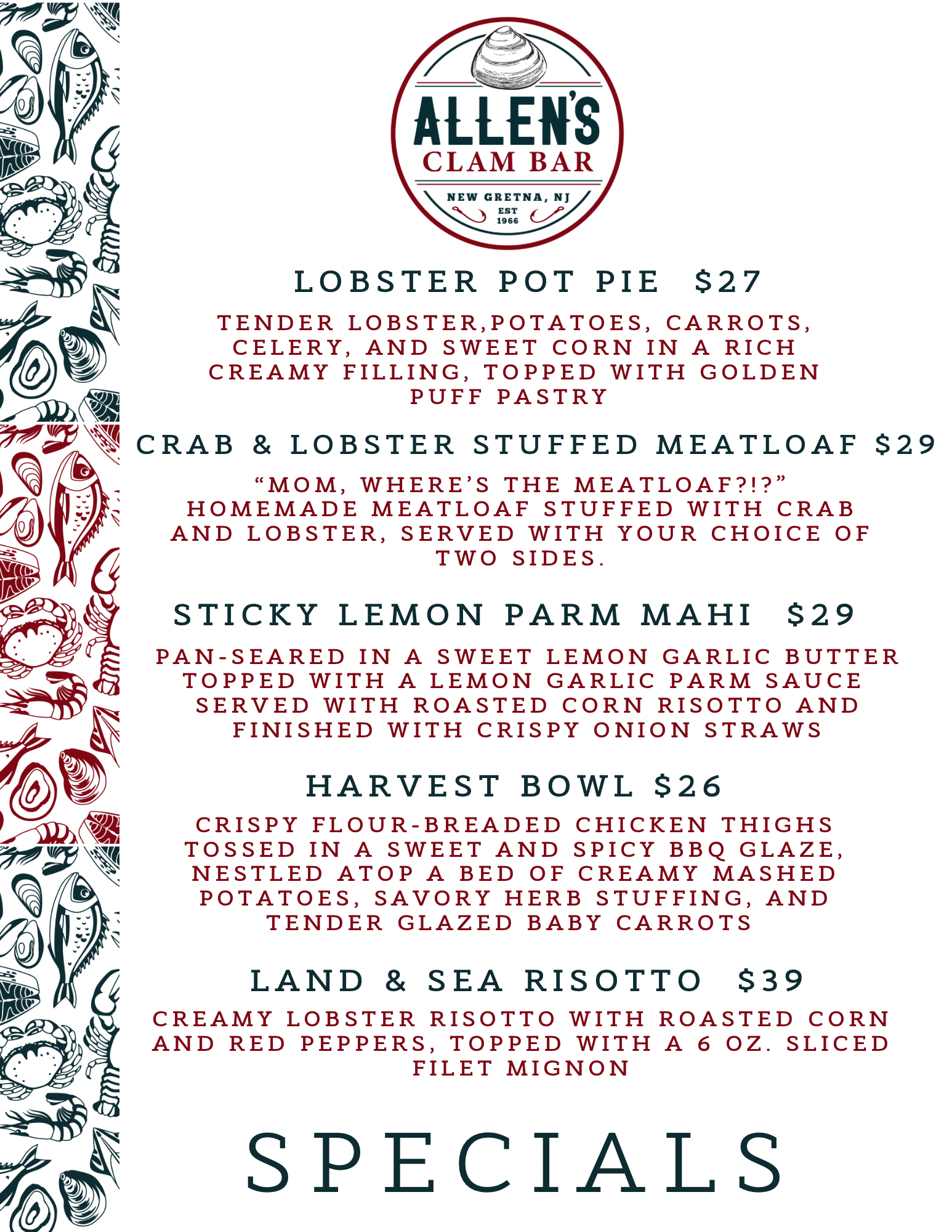 For over 60 years, Allen’s has been a staple in the New Gretna community, built on family, tradition, and great food. Whether you’re a longtime regular or visiting for the first time, we’re proud to welcome you into our story.