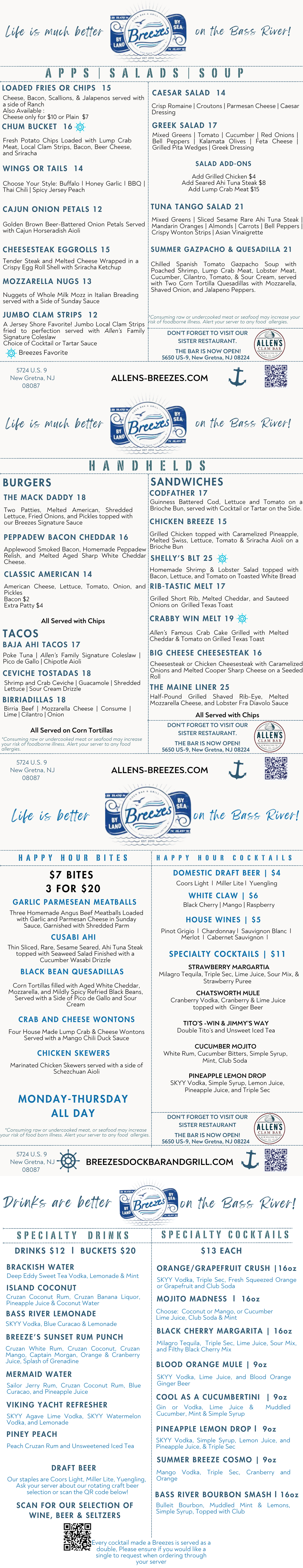 From Allen’s Clam Bar to Breezes Dock Bar and Grill